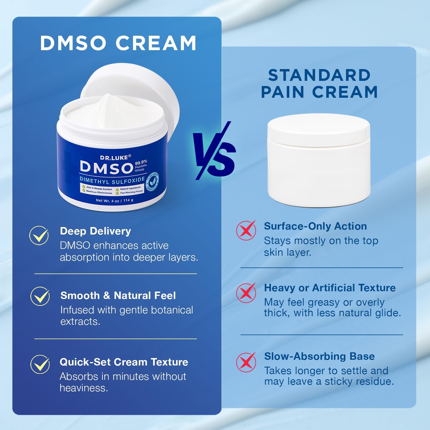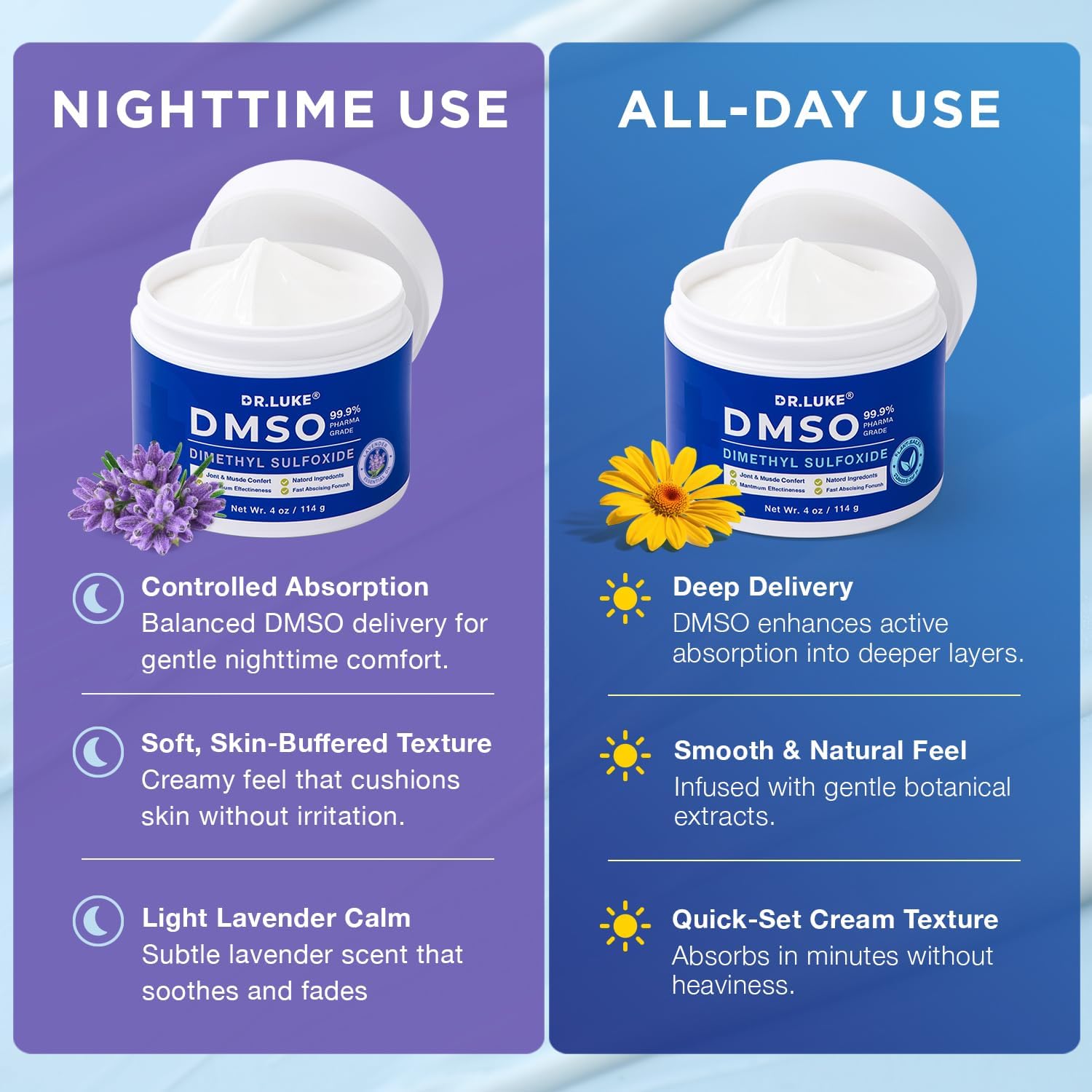 • 99.9% DMSO PHARMACEUTICAL GRADE CREAM: Formulated with highly refined 99.9% pure DMSO designed for topical use. Created for customers seeking a clean, high-quality DMSO-based cream for their daily routine.