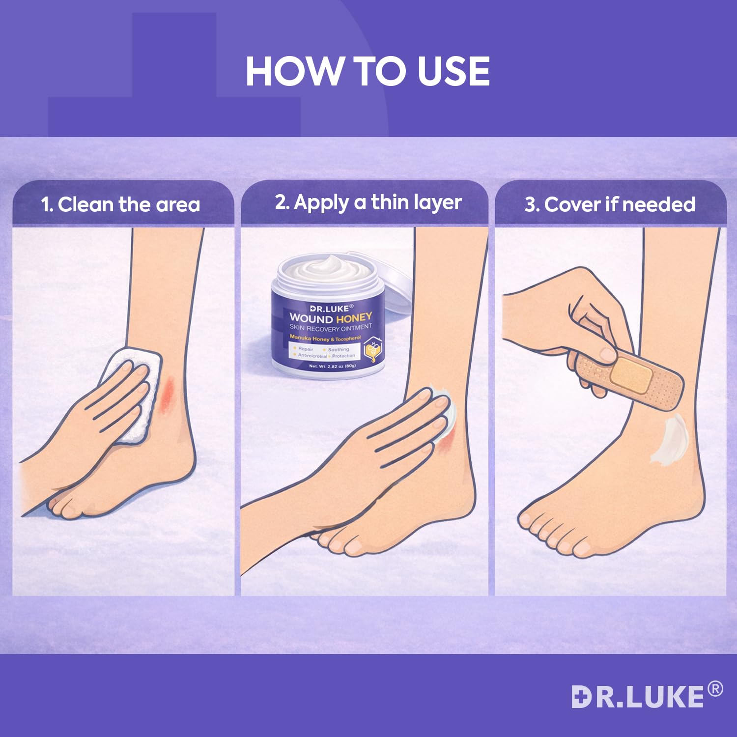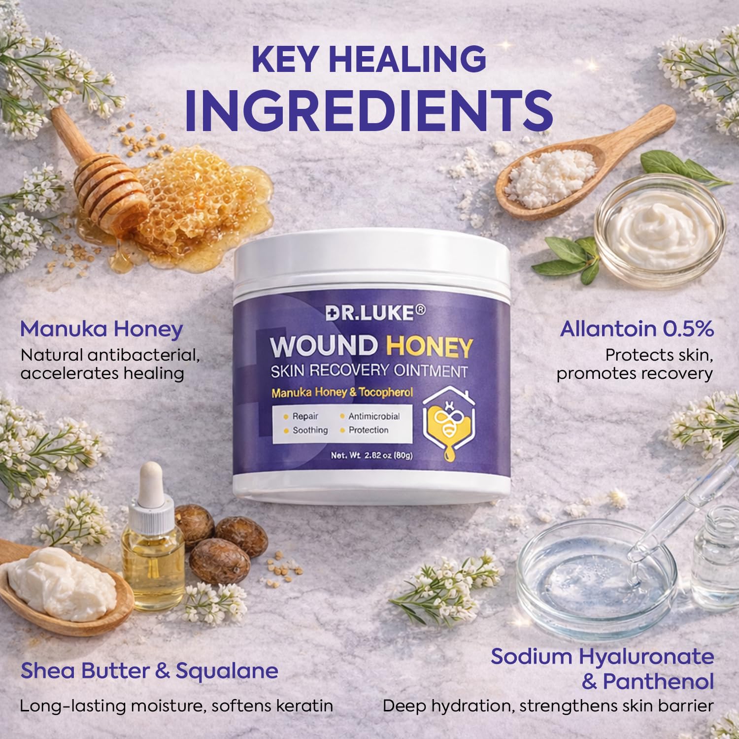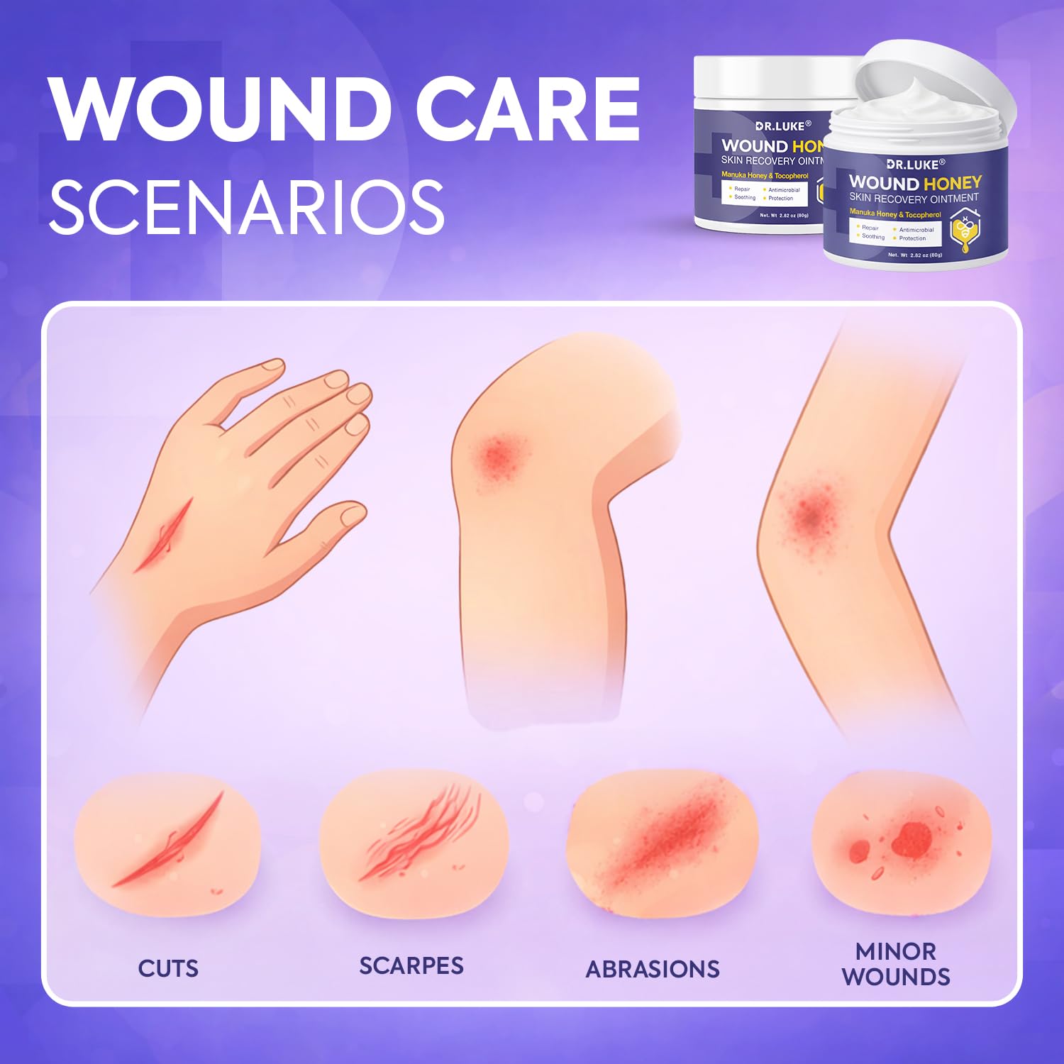 Dr. Luke Manuka Honey Wound Care: Medihoney Wound Gel for Minor wounds & Skin Repair – Manuka Honey Medical Grade with Akkantoin 0.5% & Vitamin E – 2.82 oz (80g)